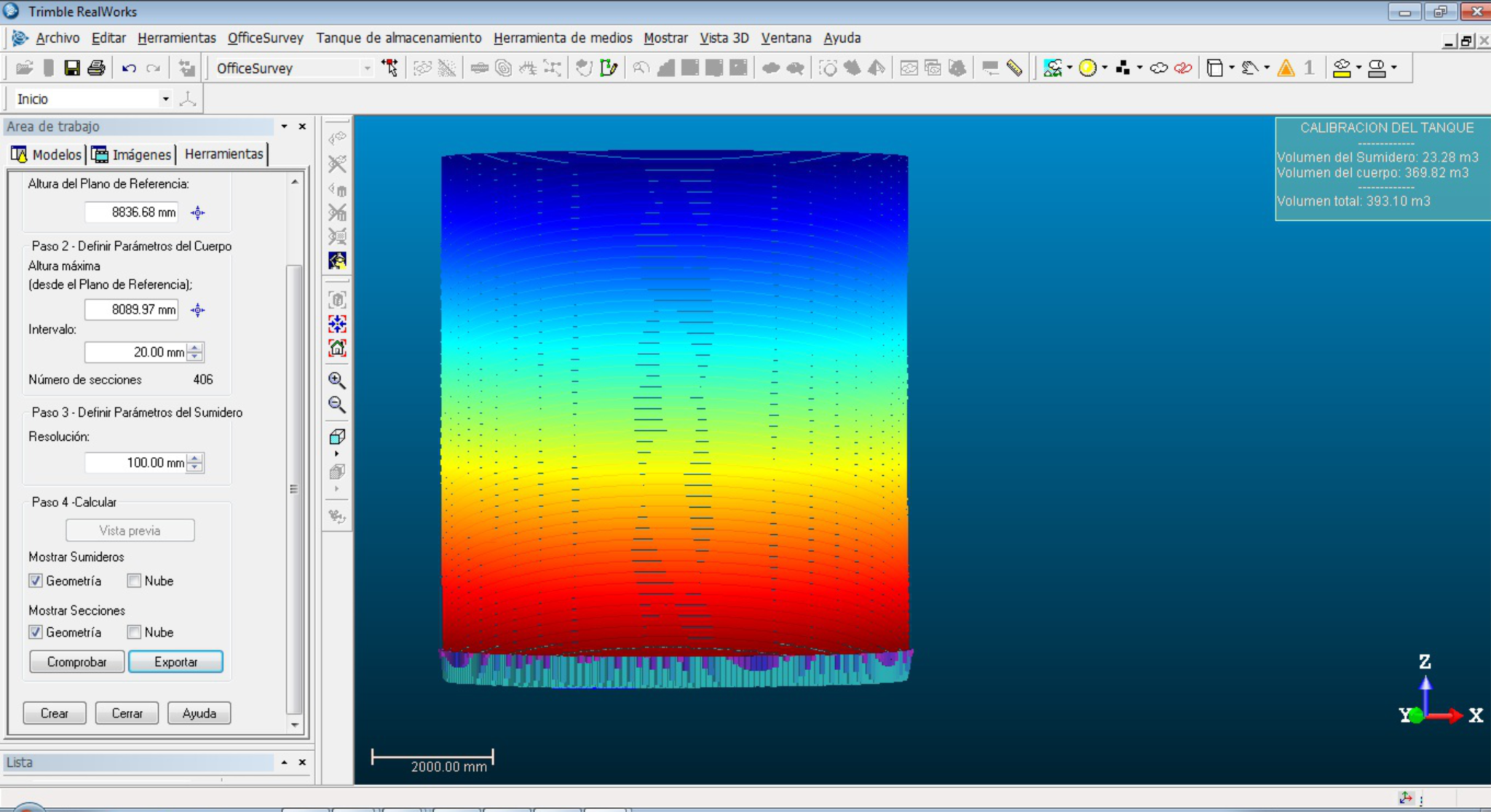 Este cálculo se hizo por medio del software Realworks de Trimble módulo Tank Calibration (Calibración de Tanque).